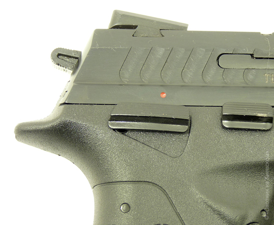 Изменение формы спусковой скобы и нанесение удобной насечкой на затворе улучшило эргономику пистолета.